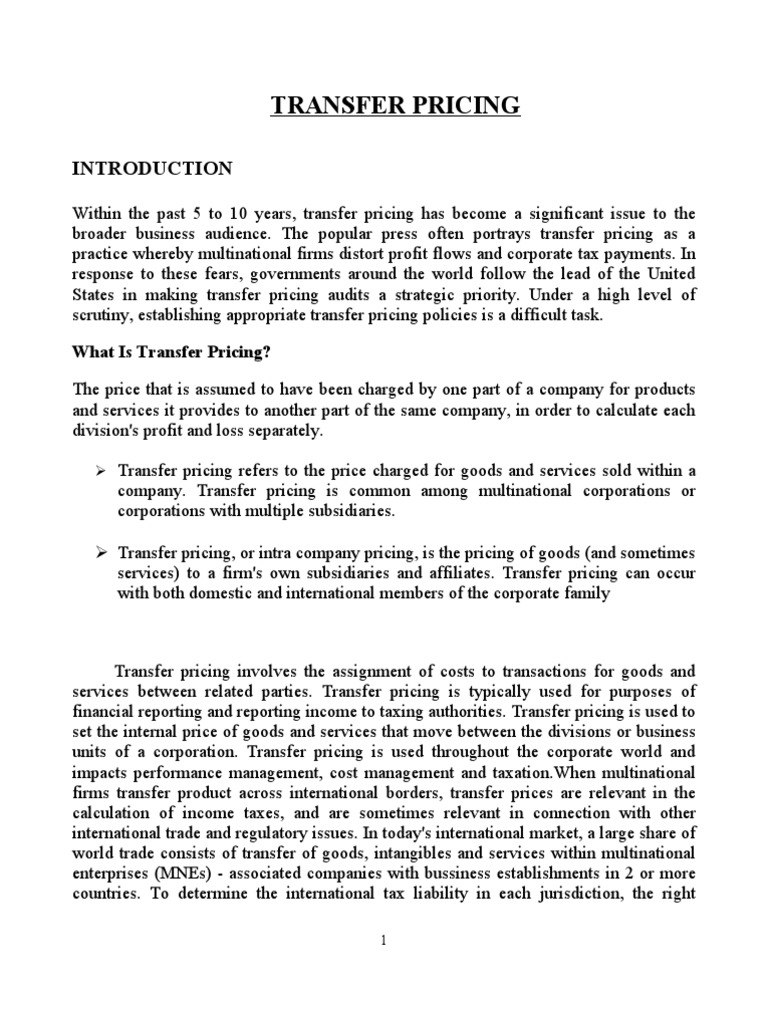What is Transfer Pricing Policy Taxes Prices