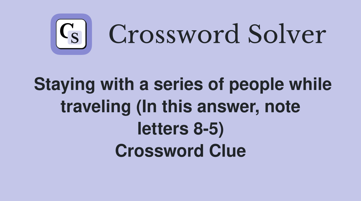 The crossword solver found 60 answers to traveling, 4 letters crossword clue. The answer to traveling is away. Find 374 solutions for the crossword puzzle traveling, from 4 to 16 letters long. Here is the answer for the crossword clue traveling last seen in la times daily puzzle. Here are all the possible answers for traveling crossword clue which contains.