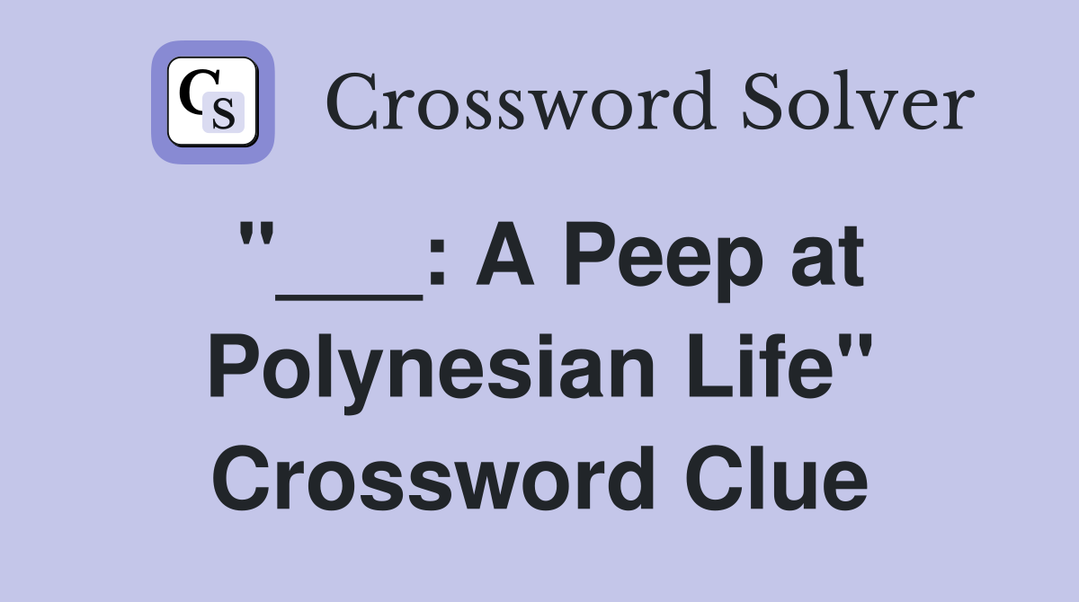 A Peep at Polynesian Life" Crossword Clue Answers Crossword Solver