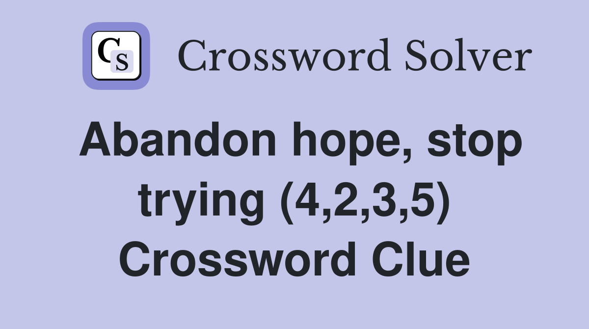 Abandon hope, stop trying (4,2,3,5) Crossword Clue Answers