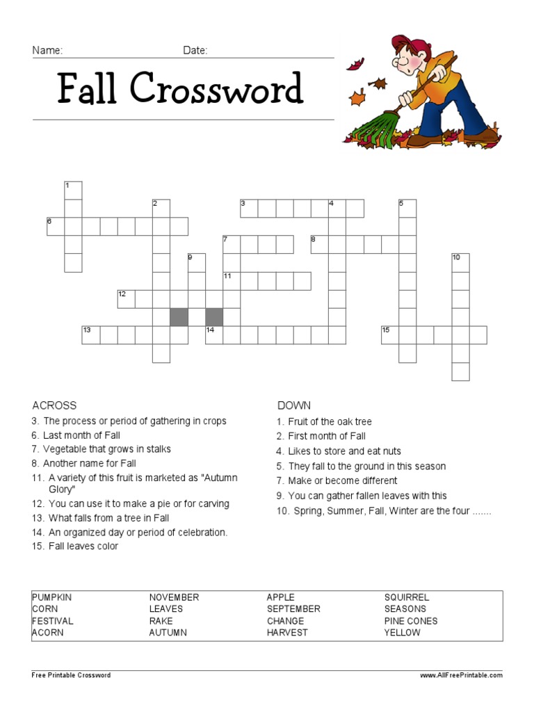 Crossword Puzzle 3 Teacher Switcher PDF Autumn Acorn