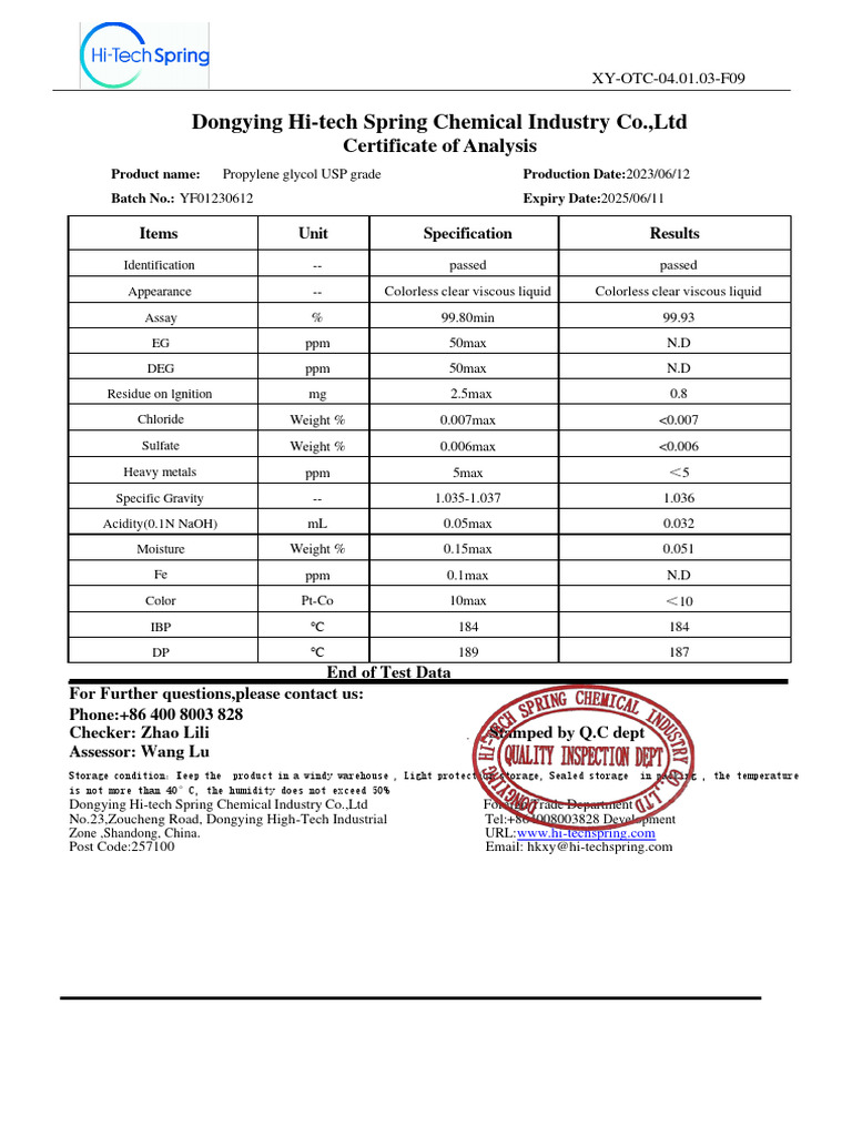 Coa PG Usp PDF Organic Compounds Products Of Chemical Industry
