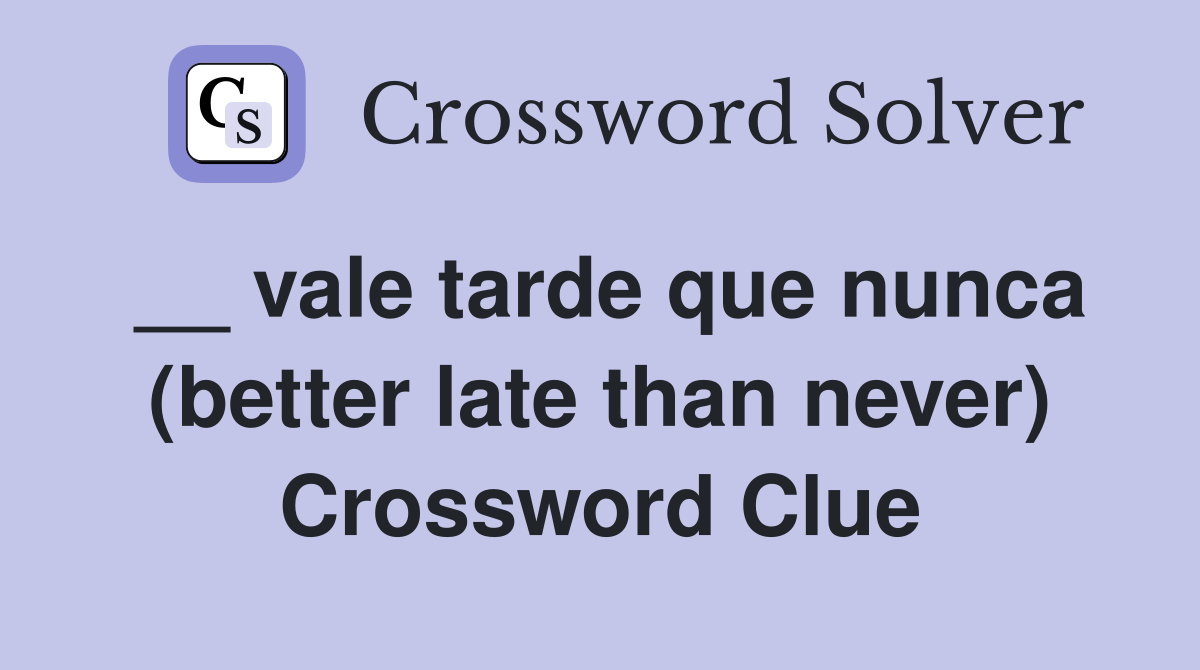 __ vale tarde que nunca (better late than never) Crossword Clue