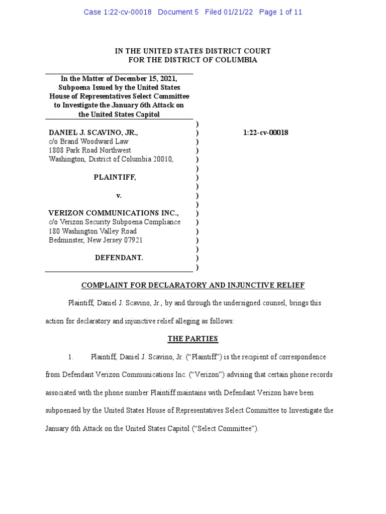 Scavino Verizon Complaint PDF United States Congress American