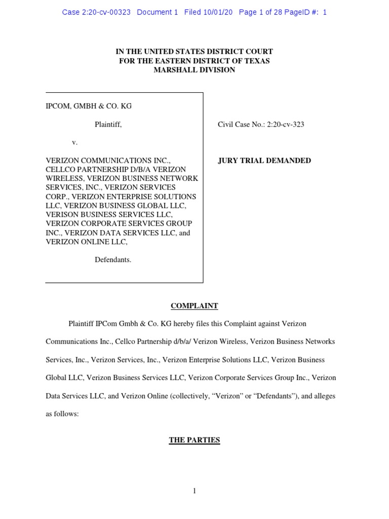 201001 v. Verizon Complaint PDF Multimedia Messaging
