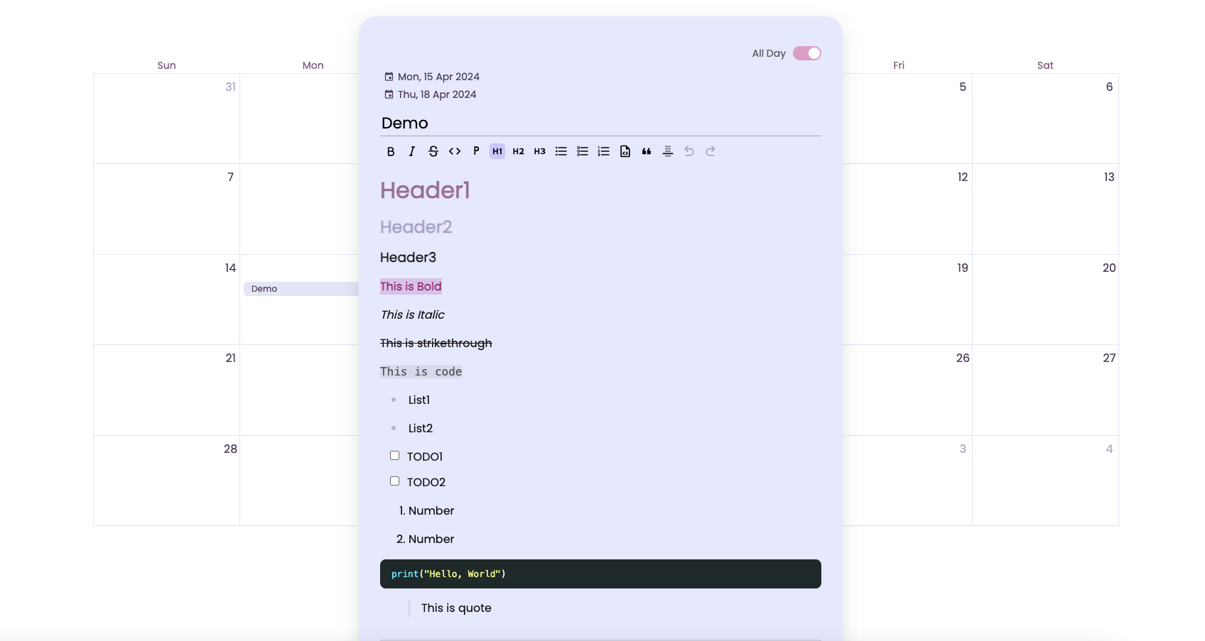 Vue Event Calendar - Fully responsive vue calendar with events for mobile and desktop with a modern.