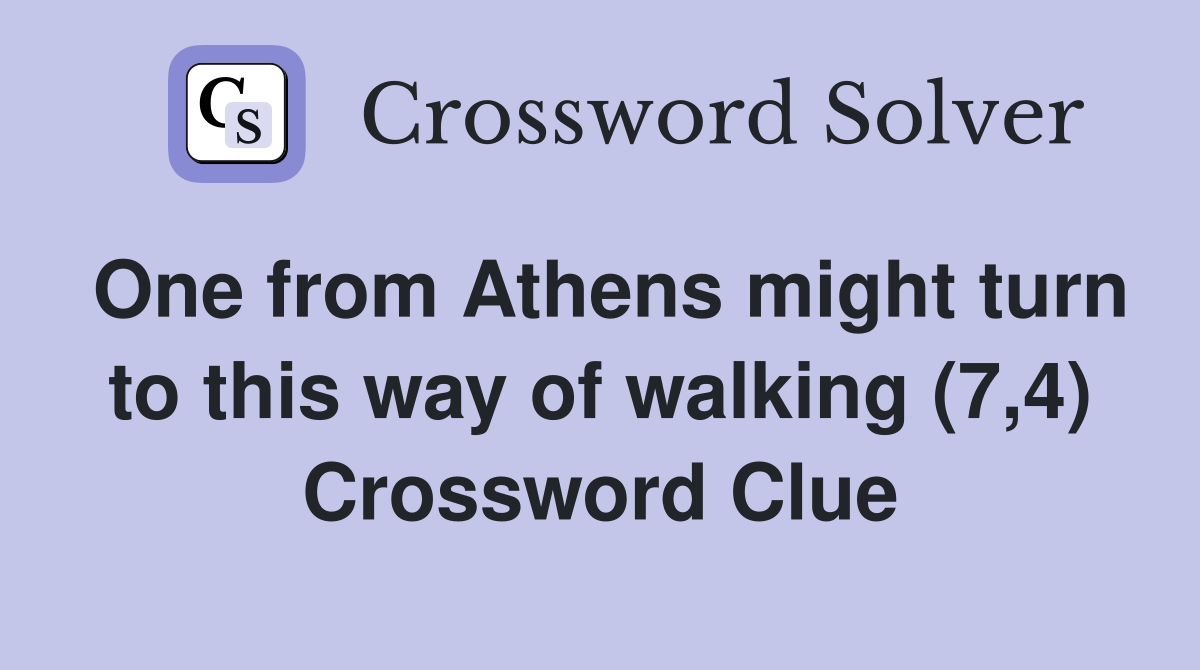 The crossword solver found 30 answers to way of walking (4), 4 letters crossword clue. Here is the answer for the crossword clue way of walking last seen in mirror quick puzzle. The crossword solver found 30 answers to way of walking, 4 letters crossword clue. Please find below the way of walking crossword clue answer and solution which is.