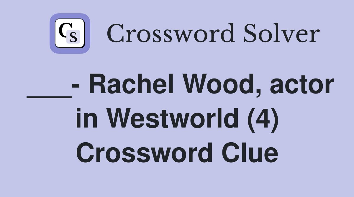Rachel Wood, actor in Westworld (4) Crossword Clue Answers