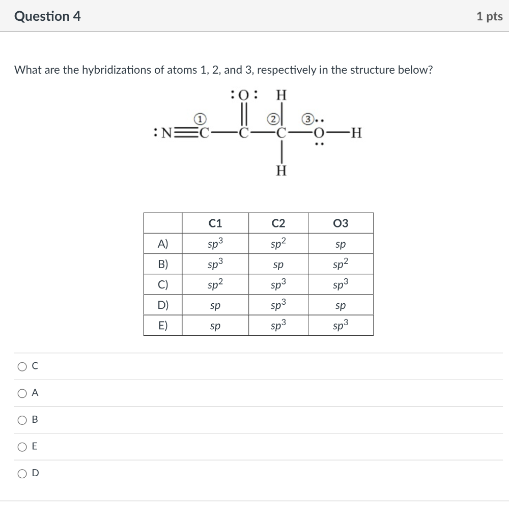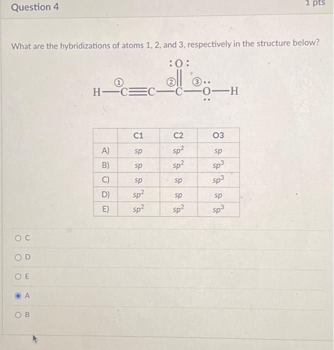 Solved What are the hybridizations of atoms 1, 2 and 3,