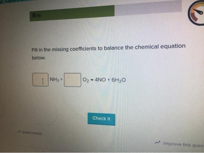 Solved 6/10 Fill in the missing coefficients to balance the