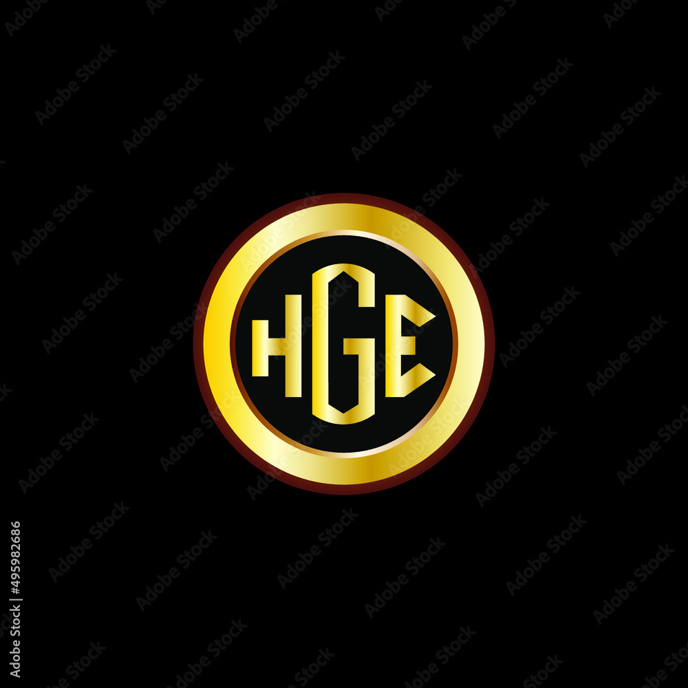 HGE letter circle logo design. HGE letter logo design with black