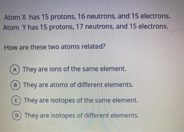 Solved Atom X has 15 protons, 16 neutrons, and 15 electrons.