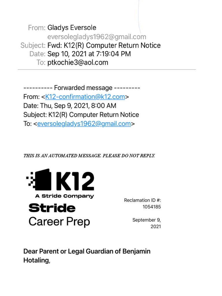 The hardware return letter and prepaid ups return labels are automatically sent through email and usps mail when one of the following events. Generally, you will need to return the computer in the following situations: Generally, you will need to return the computer or printer in the following situations:. Or what about if k12 gets new laptops? How do i.