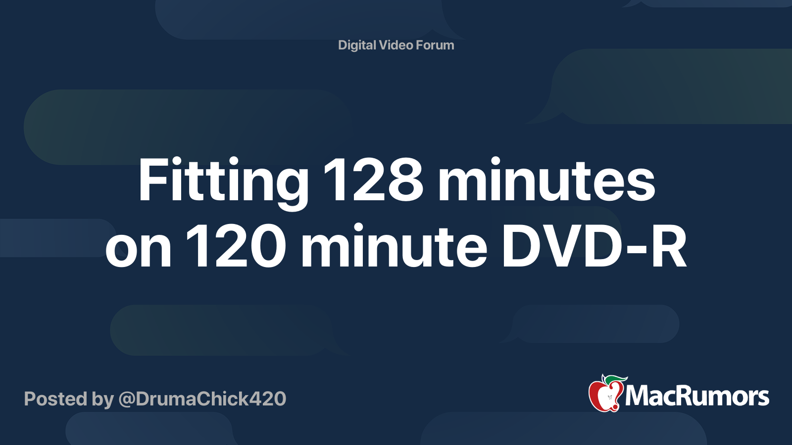 Fitting 128 minutes on 120 minute DVDR MacRumors Forums