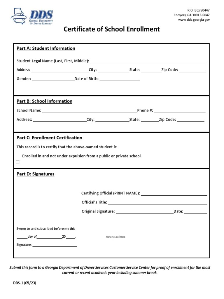 Certificate of School Enrollment Form 2023 (DDS1) PDF