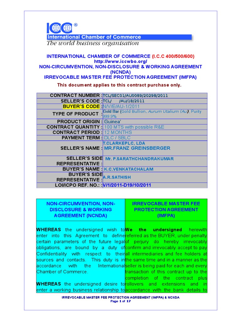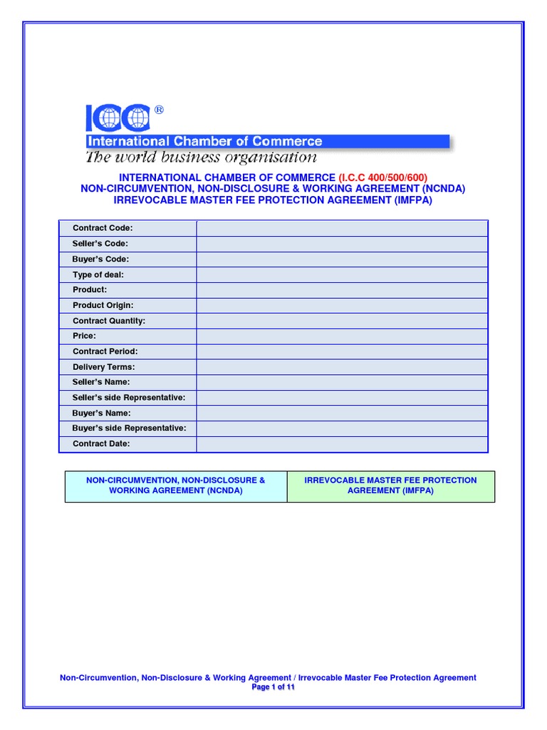 An imfpa (irrevocable master fee protection agreement) is a type of contract that outlines the terms and conditions for the payment. Irrevocable master fee protection agreement (imfpa) covers the main. Ncnda imfpa agreement legally binding sets terms conditions intermediaries, brokers agents,. It is understood that for the purposes of this master fee protection. What is the ncnda imfpa agreement?