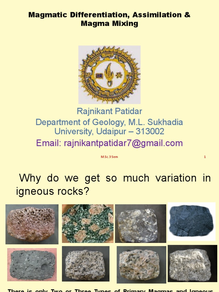 MAGMATIC DIFFERENTIATION and Processes Behind This Mechanism PDF