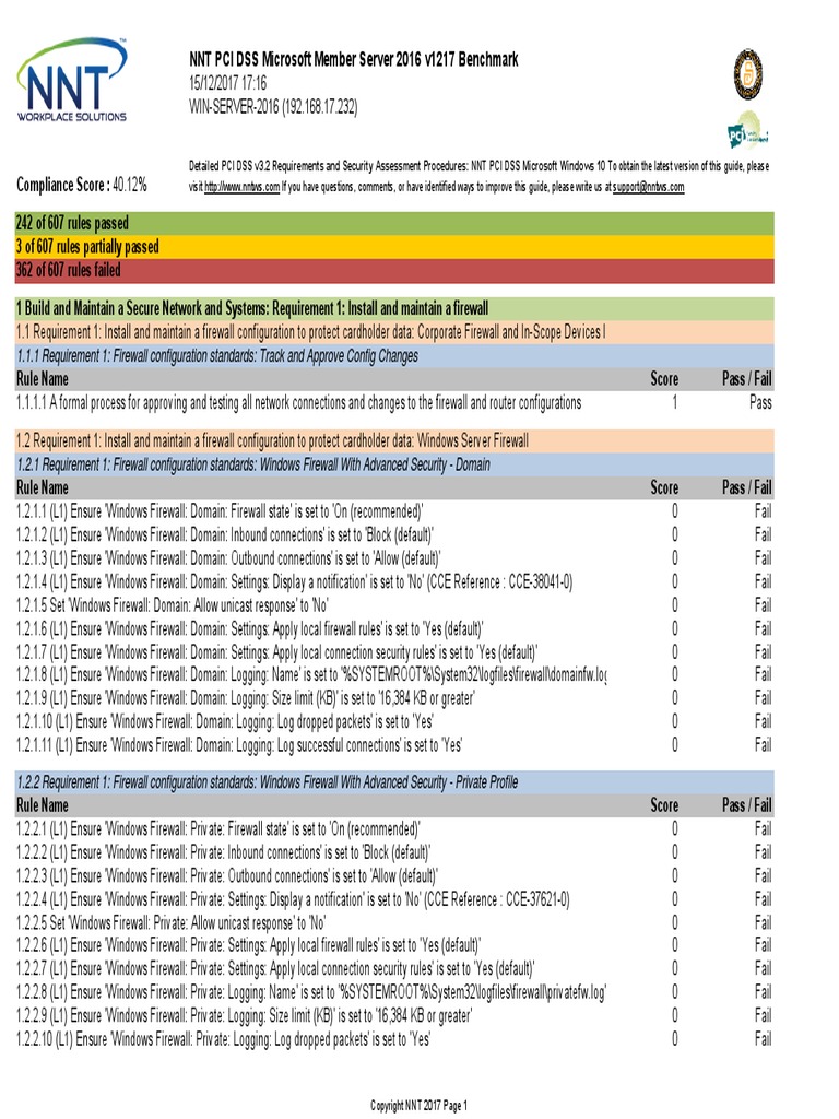 NNT PCI DSS Microsoft Member Server 2016 v1217 PDF Firewall