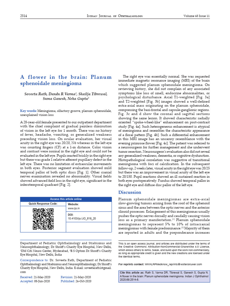 Planum Sphenoidale Meningioma Download Free PDF Resonance