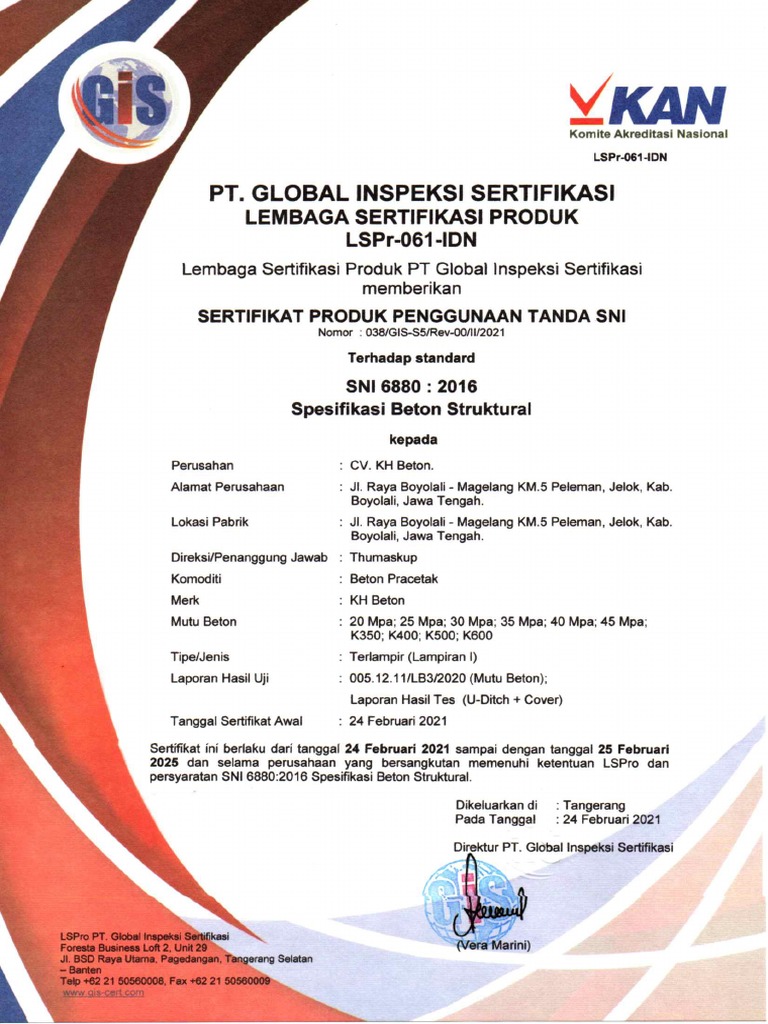 Sertifikasi SNI Saluran, BC DLL PDF