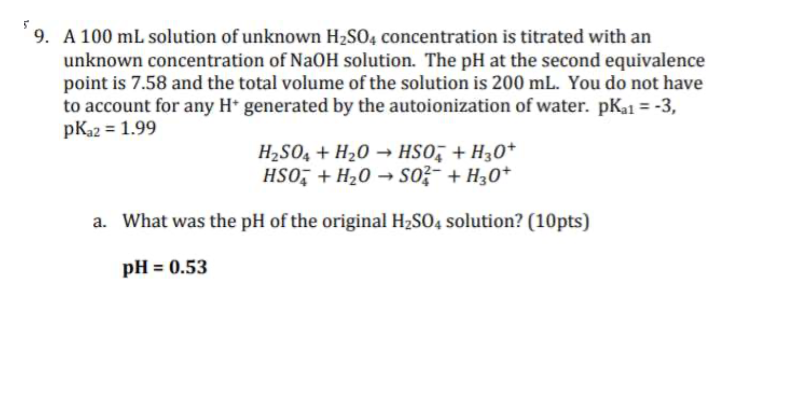 Solved 5 9. A 100 mL solution of unknown H2SO4 concentration