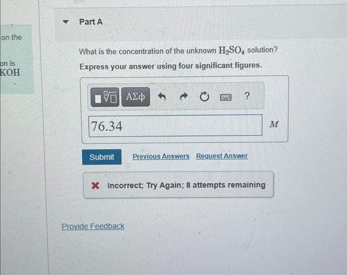 Solved A 34.00 mL sample of an H_2SO_4 solution of unknown