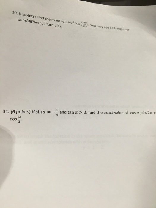 Solved Find the exact value of cos (7pi/12). you may use or