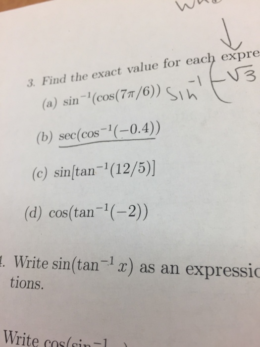 Solved Find the exact value for each expression