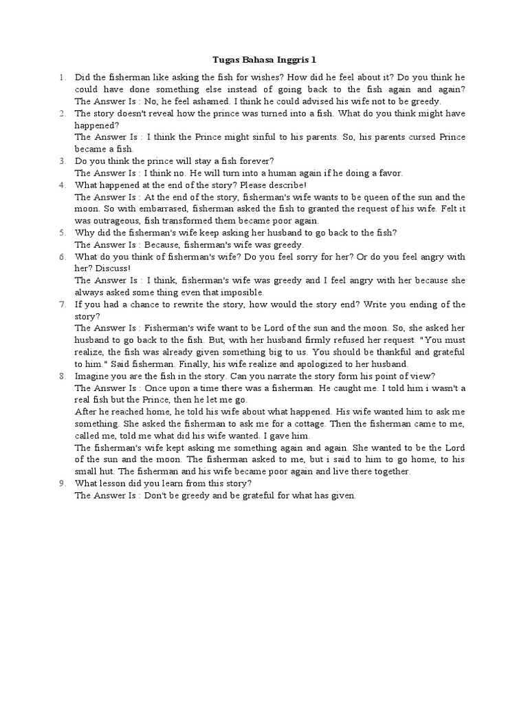 Did The Fisherman Like Asking The Fish For Wishes PDF