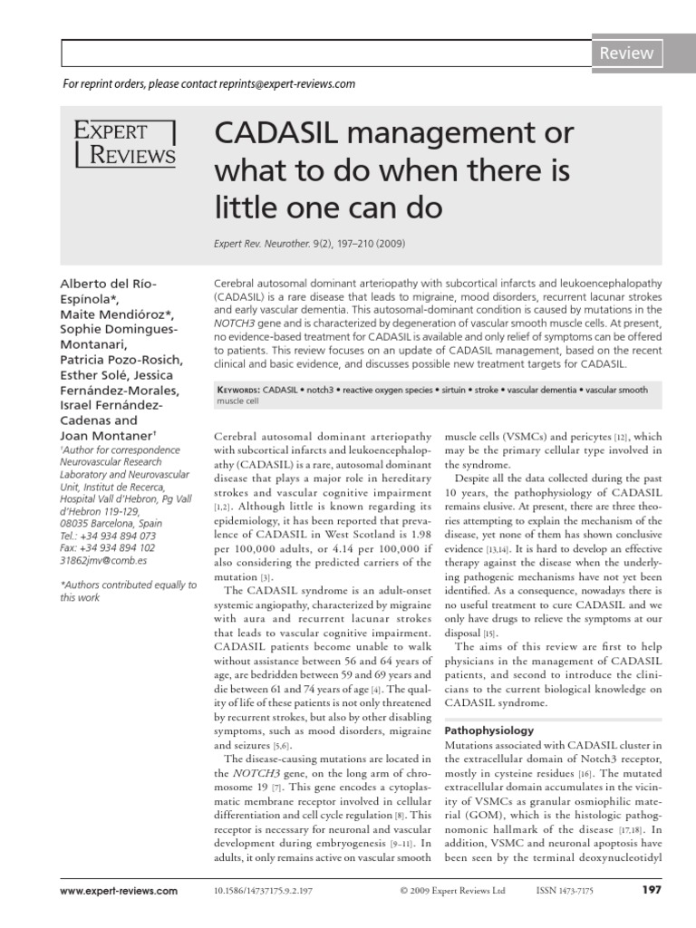 CADASIL Management or What To Do When There Is Little One Can Do. PDF