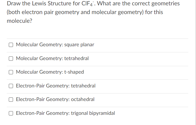 Solved Draw the Lewis Structure for ClF4. What are the