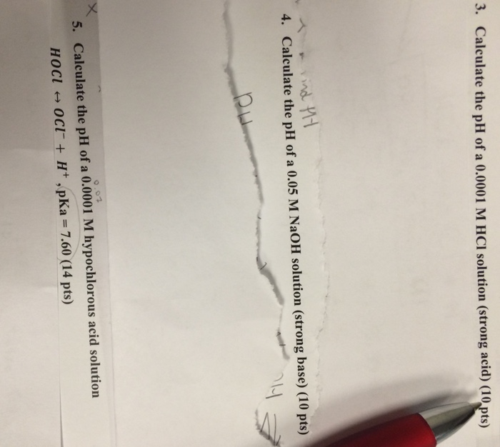 Solved What is the pH of a solution that is 0.0001 M HCl?