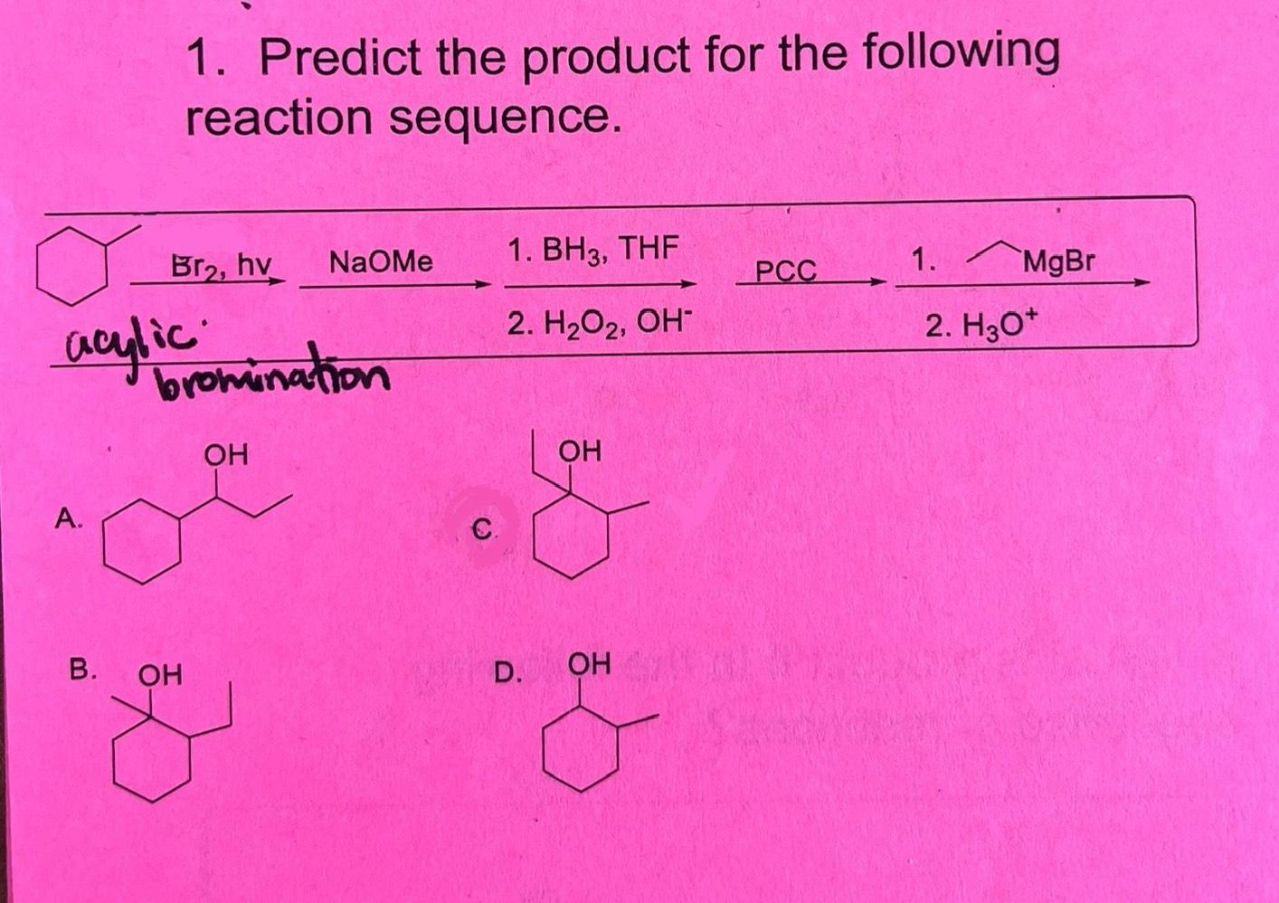 Study with quizlet and memorize flashcards containing terms like 9.1 predict the major product(s) in the reactions below., 9.2 what is the. To determine the product w, we need to follow the reaction sequence and identify the final product.