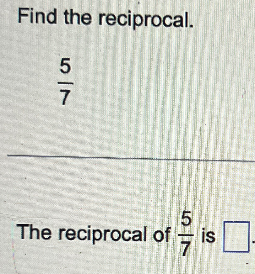 Solved Find the reciprocal.57The reciprocal of 57 is
