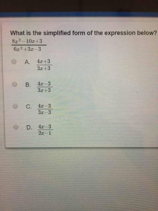 In that term you can also simplify to then both terms. Welcome to graphical universal mathematical expression simplifier and algebra solver. In the first term, you simplified to just. Start with the given expression. What is the simplified form of the following expression?