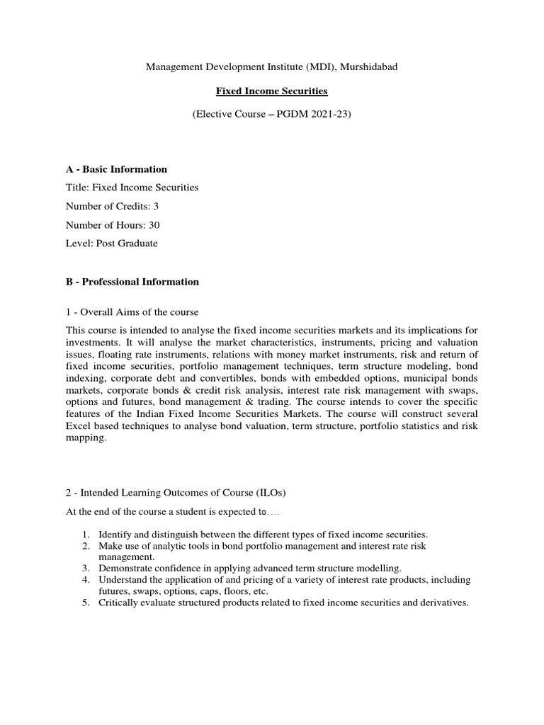 Fixed Securities PDF Fixed Bonds (Finance)