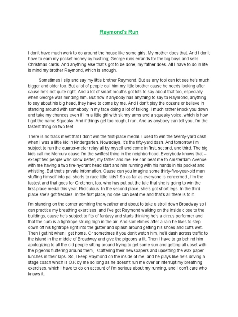 The theme of love and family relationships is central to toni cade bambara's raymond's run. the story follows squeaky, a young girl who. We might analyse ‘raymond’s run’ by identifying two core strands to the story: Hazel’s relationship with her brother, and her attitude to gretchen.