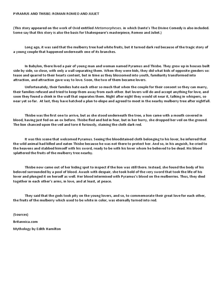 The myth of pyramus and thisbe is often seen as representing the archetype of forbidden love, miscommunication, and tragic fate. Pyramus and thisbe is a tragic love story that is referenced and parodied in william shakespeare's play a midsummer night's dream. in the play, a group of amateur actors. Handsome youth of babylon who falls in love with his neighbor,.