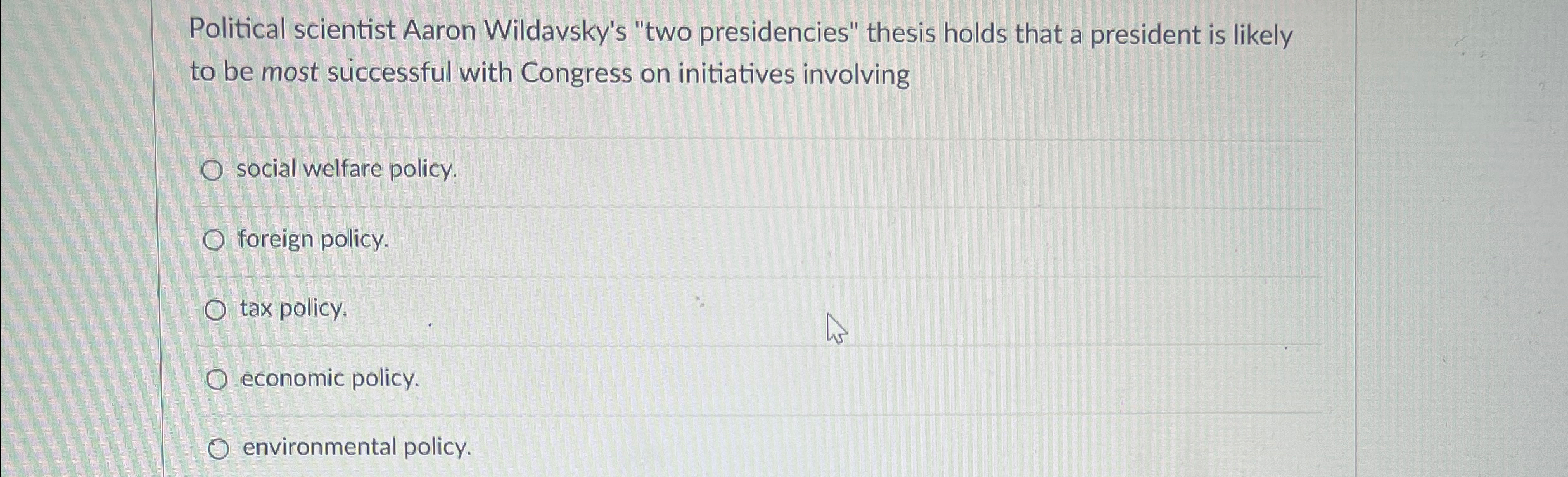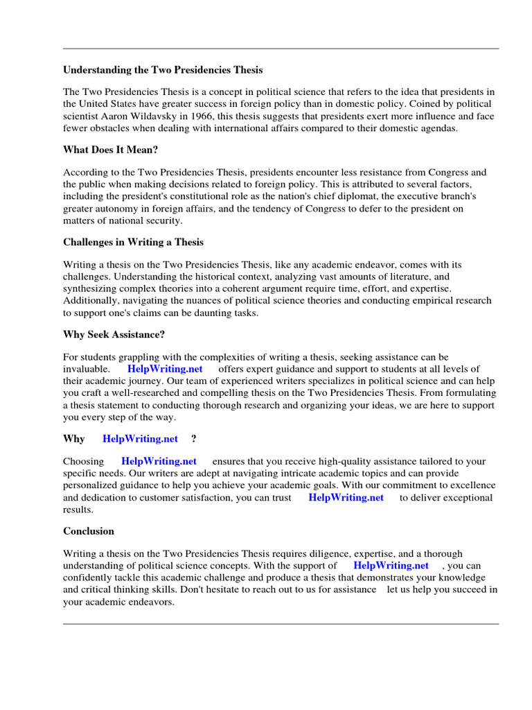 SOLVED Please define the "two presidencies thesis." List and discuss