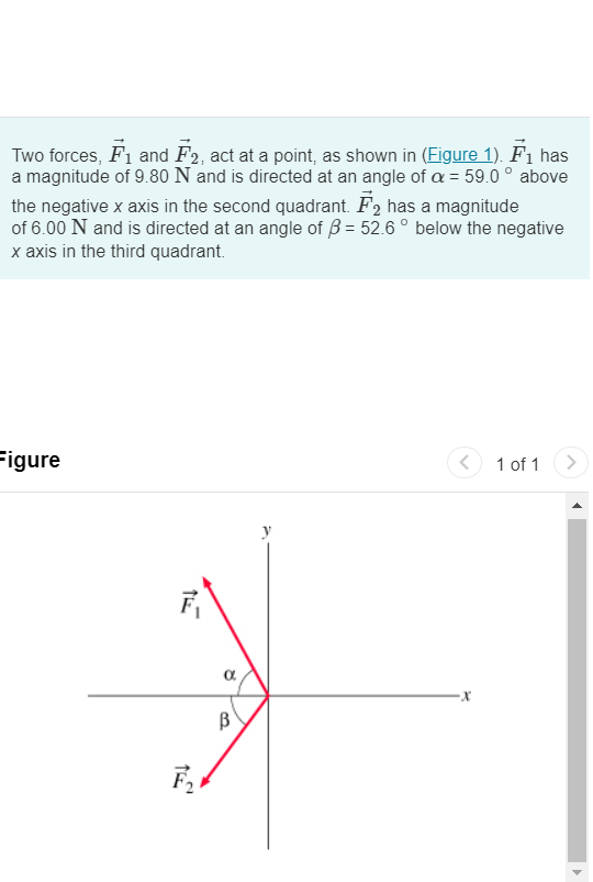 Solved Two forces, Fi and F2, act at a point, as shown in