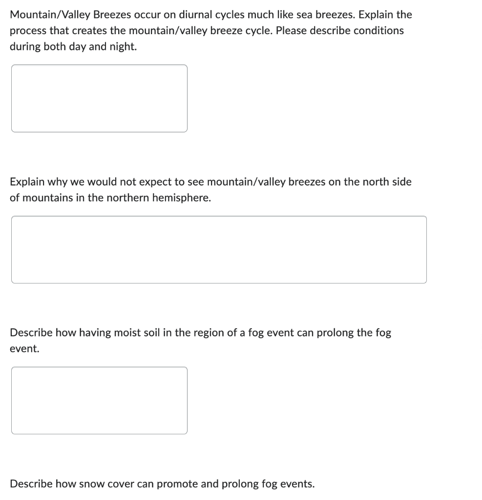 [Solved] explain BOTH mountain AND valley breezes, including any