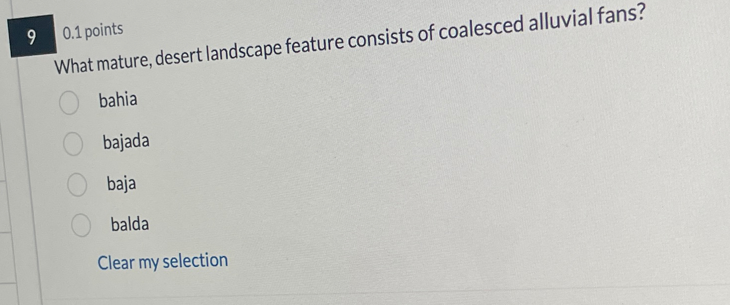 Solved 90.1 pointsWhat mature, desert landscape feature