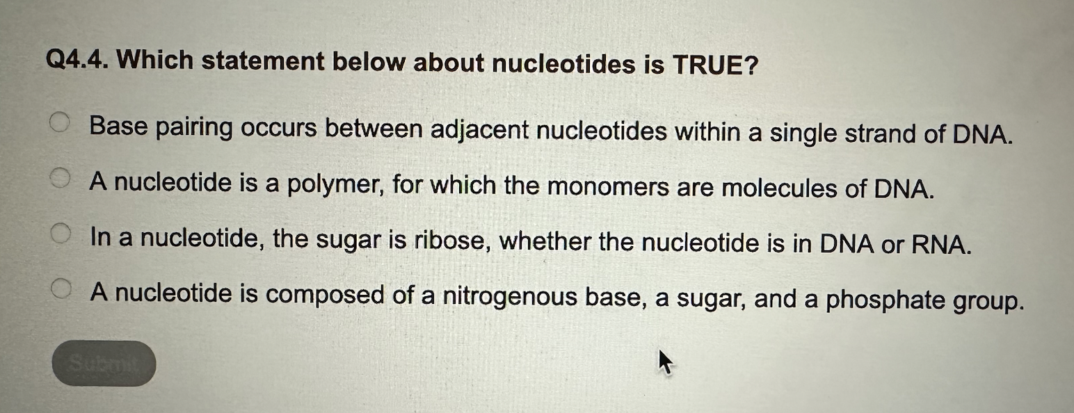 Solved Q4.4. Which statement below about nucleotides is