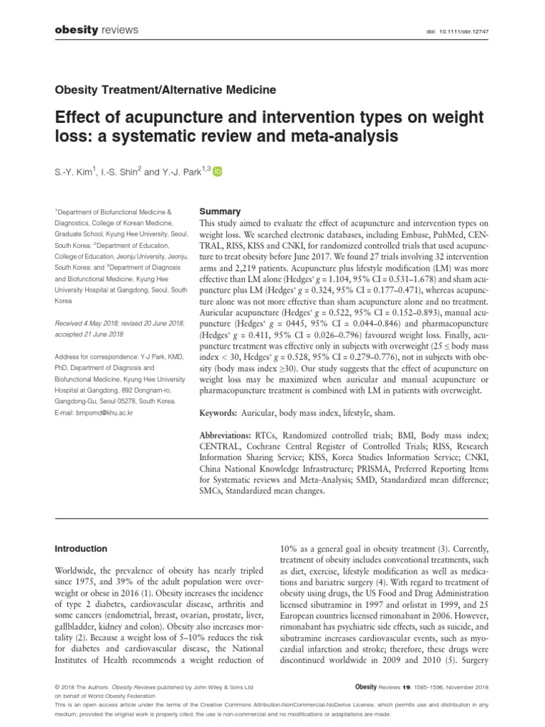 Obesity Reviews 2018 Kim Effect of Acupuncture and Intervention