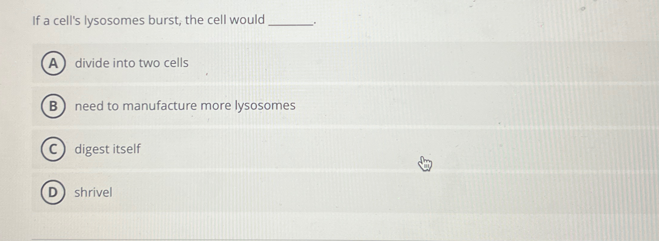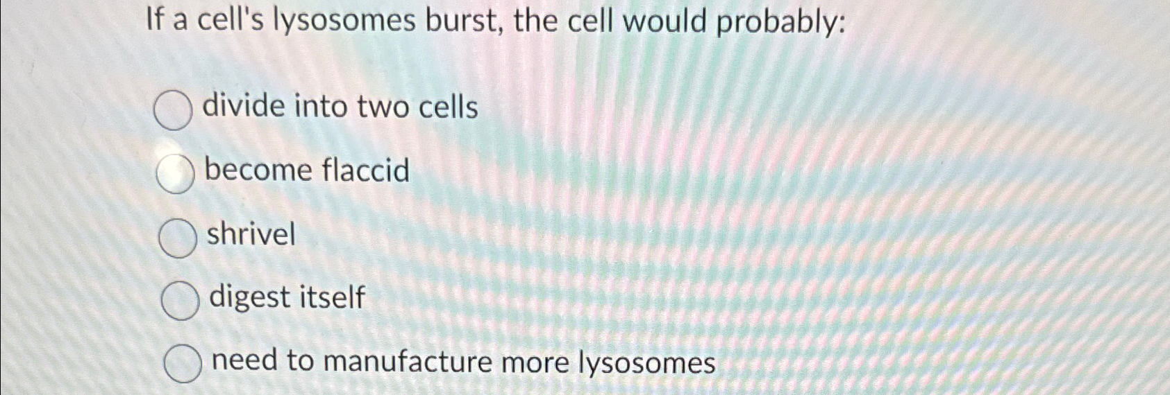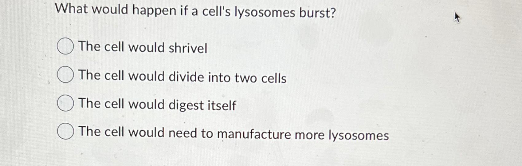 Solved If a cell's lysosomes burst, the cell woulddivide