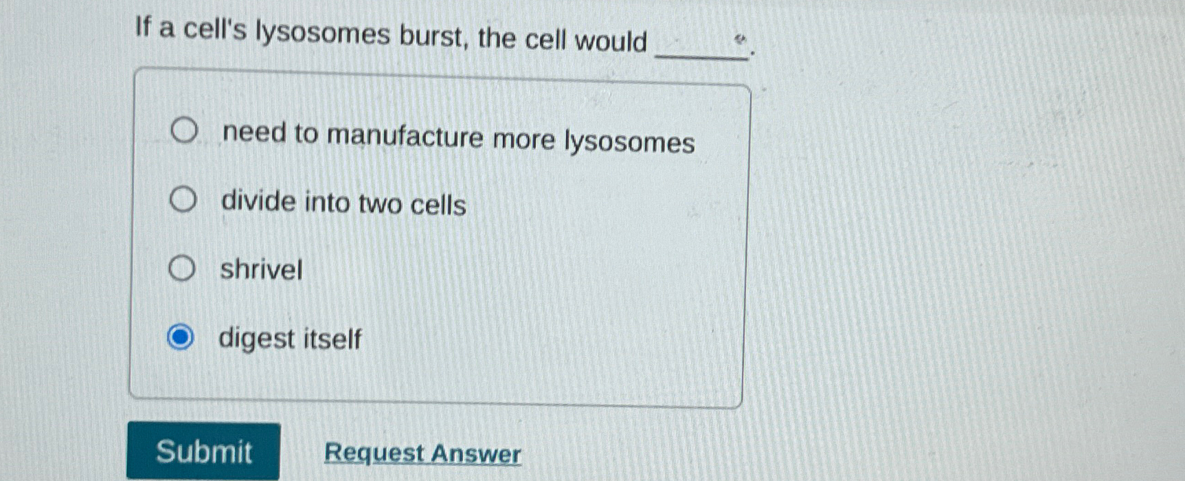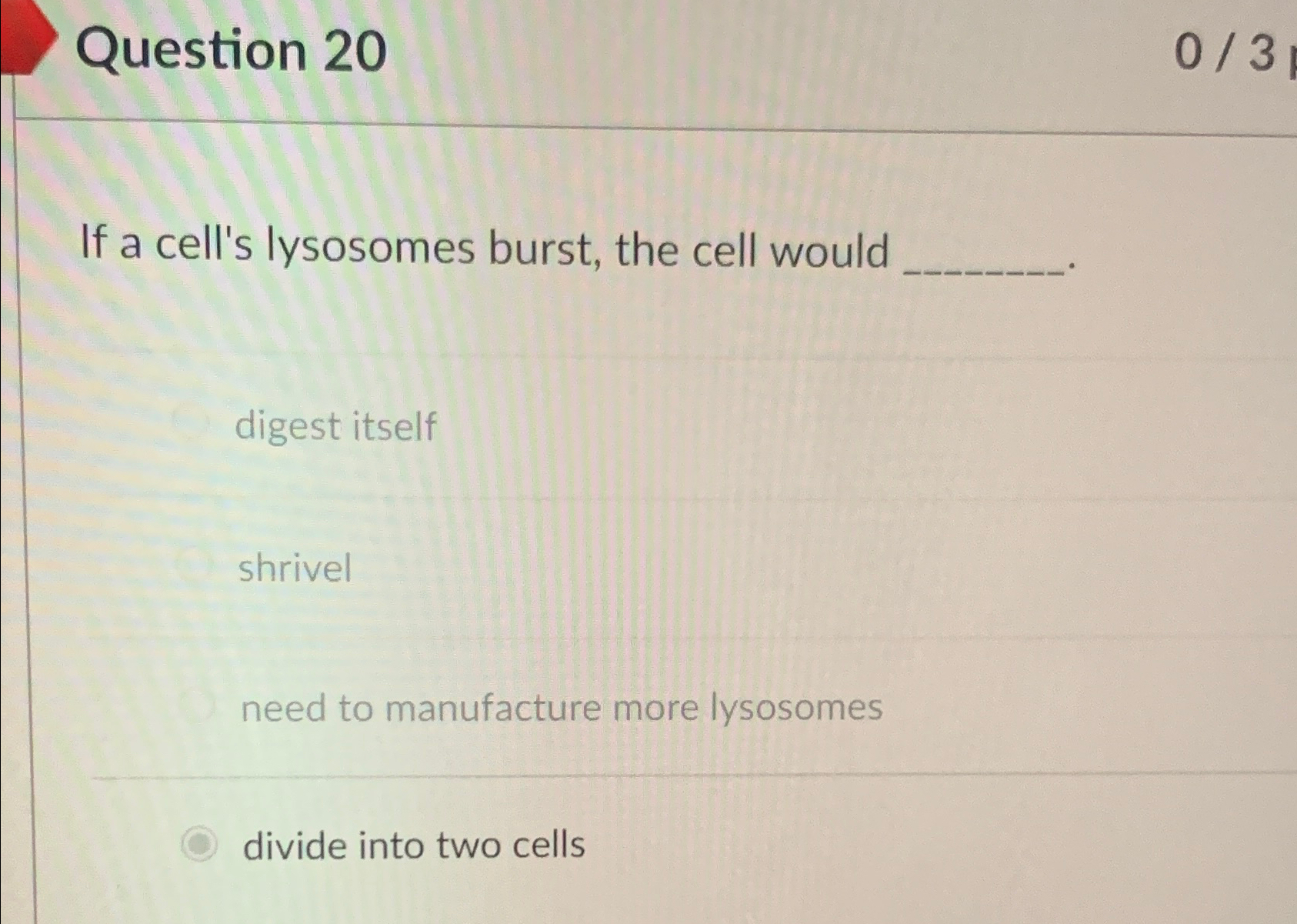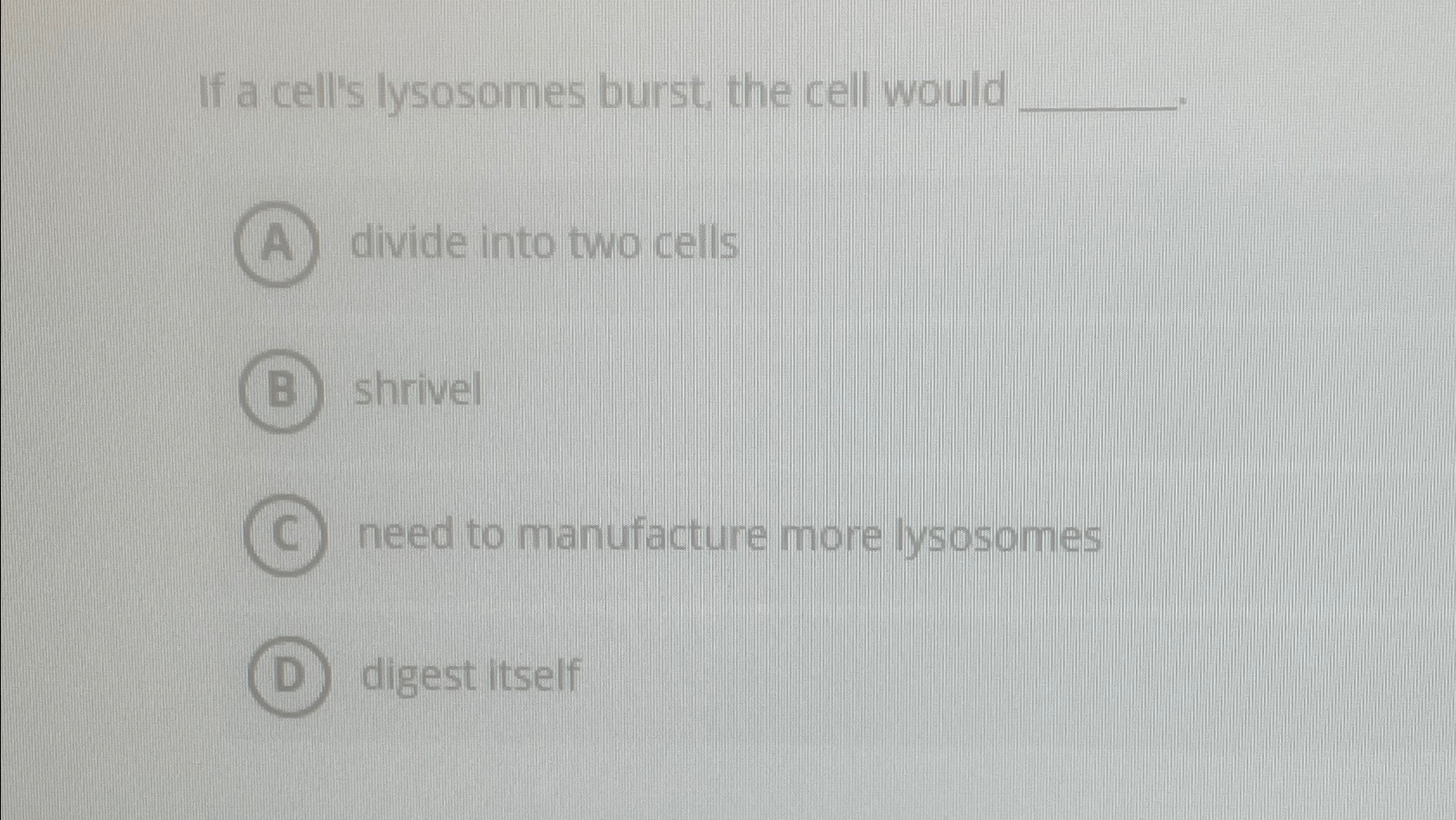 Solved If a cell's lysosomes burst, the cell woulddivide