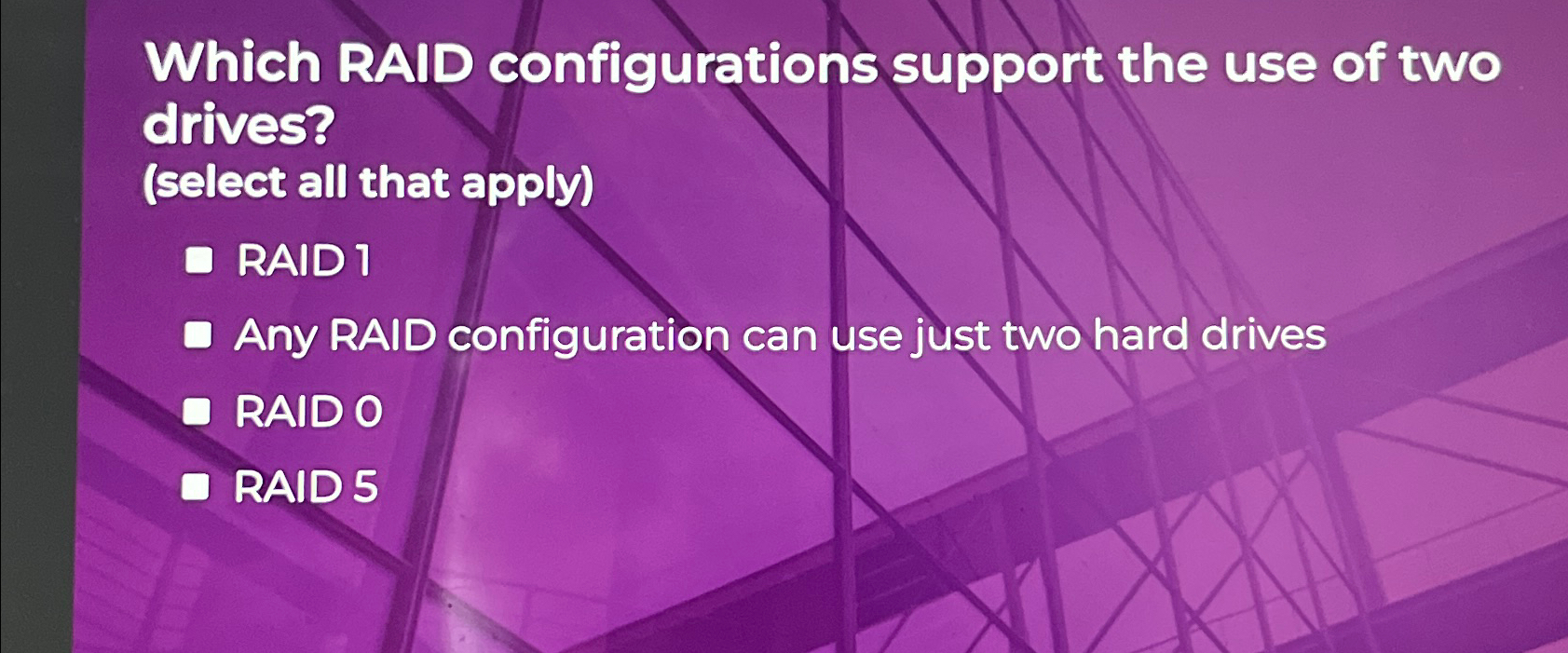 Solved Which RAID configurations support the use of two