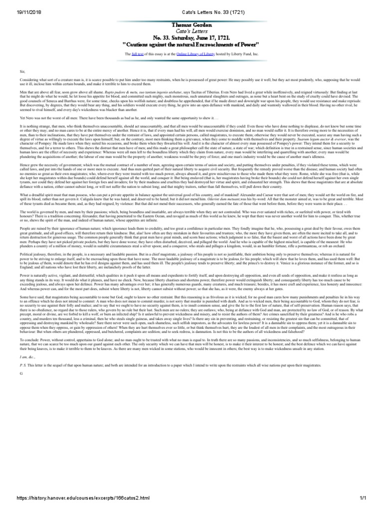 Two british journalists, john trenchard and thomas gordon, launched a series of letters published in the london journal on. Between 1720 and 1723 john trenchard and thomas gordon, collaborating under the pseudonym of cato, published.