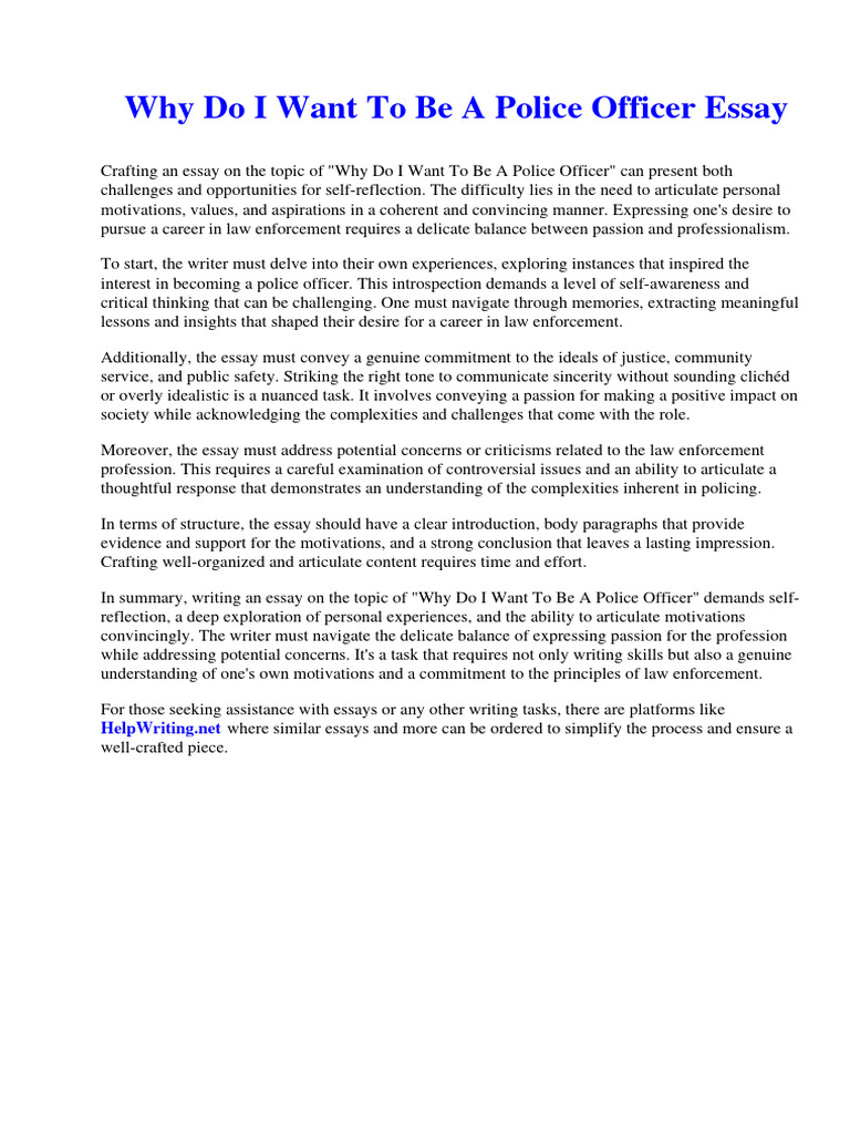 Why Do I Want To Be A Police Officer Essay Download Free PDF Net