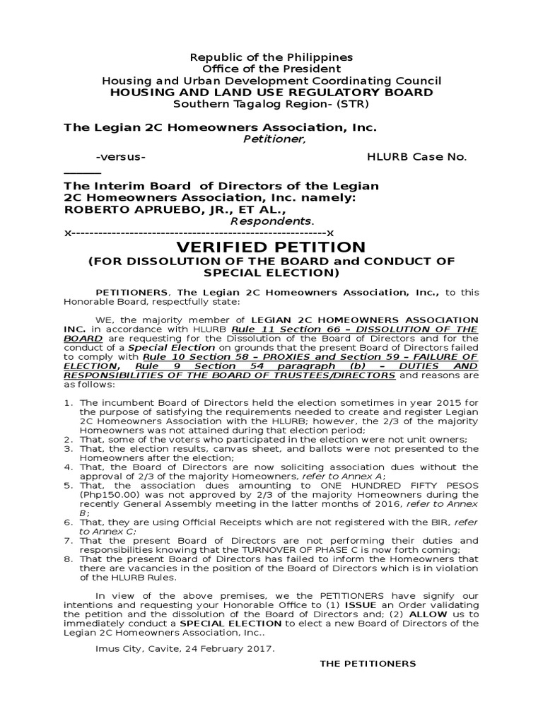 Verified Petition For Dissolution PDF Board Of Directors Government